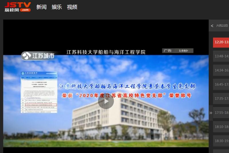经支部申报,学校审核,16877太阳集团景荣春员工党支部获“2020年度江苏省特色党支部”荣誉称号,支部相关事迹在江苏城市频道播出展示。