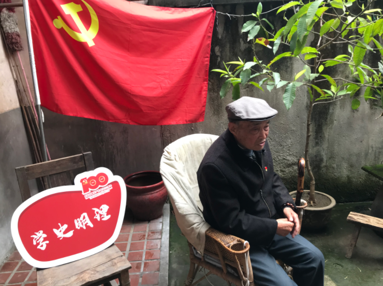 尽管已91岁高龄,乔老依然精神矍铄,思维清晰。看到孩子们来了,他吩咐家人在院中摆出一张老旧的靠背木椅。“孩子们,你们认得这两个字吗?”他指着木椅靠背上两个雕刻字说,“这两个字是篆体字‘医政’,八十多年前,我们这里就是当时的后方战地医院。”
