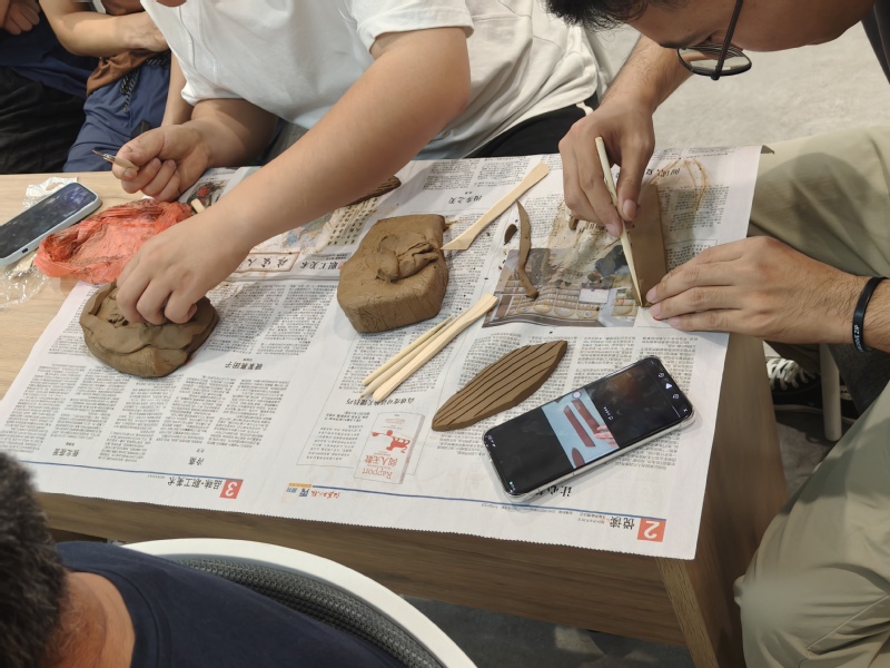 在手工体验环节,40余名员工与社区居民在指导下亲手制作泥叫叫。揉泥、塑形、开孔、修胚…参与者沉浸于泥土的触感中,感受传统手工艺的温度。船舶学院员工将专业特色融入创作,捏制出船锚、浪花等造型,诠释“船承”主题的双重内涵——既是对非遗技艺的接力传承,亦彰显船舶学子的专业认同。