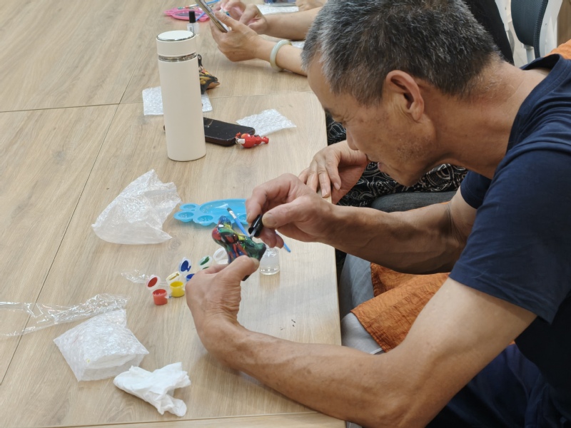 活动伊始,“蓝途”一站式员工社区志愿者申福康现场讲解太平泥叫叫的历史渊源。作为起源于民间的陶塑玩具,太平泥叫叫以镇江本地黄泥为材,经捏塑、烧制、彩绘等12道工序制成,其哨音清脆悠扬,承载着祈福纳祥的美好寓意。宣讲人通过实物展示,解读了泥叫叫造型中蕴含的地域文化符号。