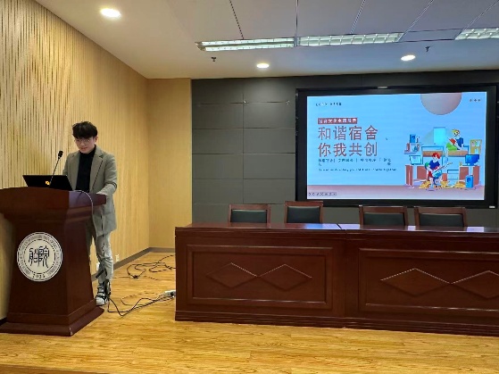 活动现场,各参赛宿舍依次上台,通过PPT讲解、图片展示和现场汇报等形式,介绍本宿舍在文明建设中的特色做法与亮点成果。有的宿舍以“共建文明寝室,共享温馨小家”为主题,重点展示了宿舍成员在卫生维护、制度建设和日常协作方面形成的良好习惯;有的宿舍从环境布置、文化氛围和学习规划入手,展现了整洁有序、积极向上的宿舍风貌;还有宿舍结合成员专业特色和个人成长经历,生动诠释了团结互助、共同进步的宿舍精神。